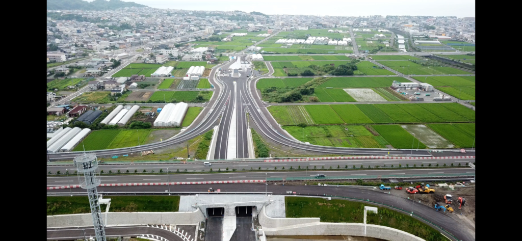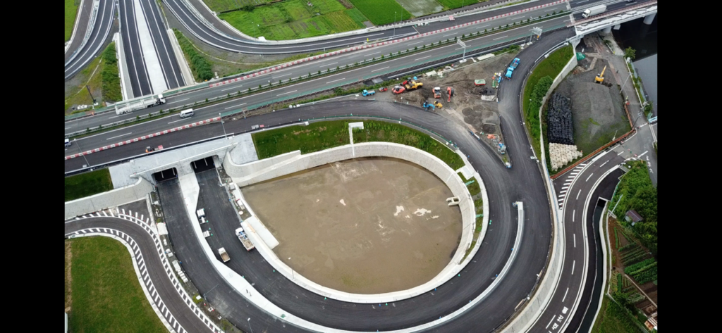 素晴らしいスマートインターチェンジが出来上がりつつありました。トランペット型というのでしょうか、普通のインターチェンジに大差ないような立派なインターを見ることができました。